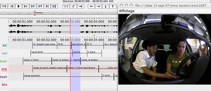 Audio and videorecordings, as well as their subsequent transformations into usable data and into transcripts constitute the basis of my work on language in social interaction. These practices are highly consequential for the ways in which we do our analyses, we demonstrate our results, and we share our findings; in this respect they do not constitute a mere technical / methodological dimension of our work but should be a topic of inquiry for the study of our scientific practices.